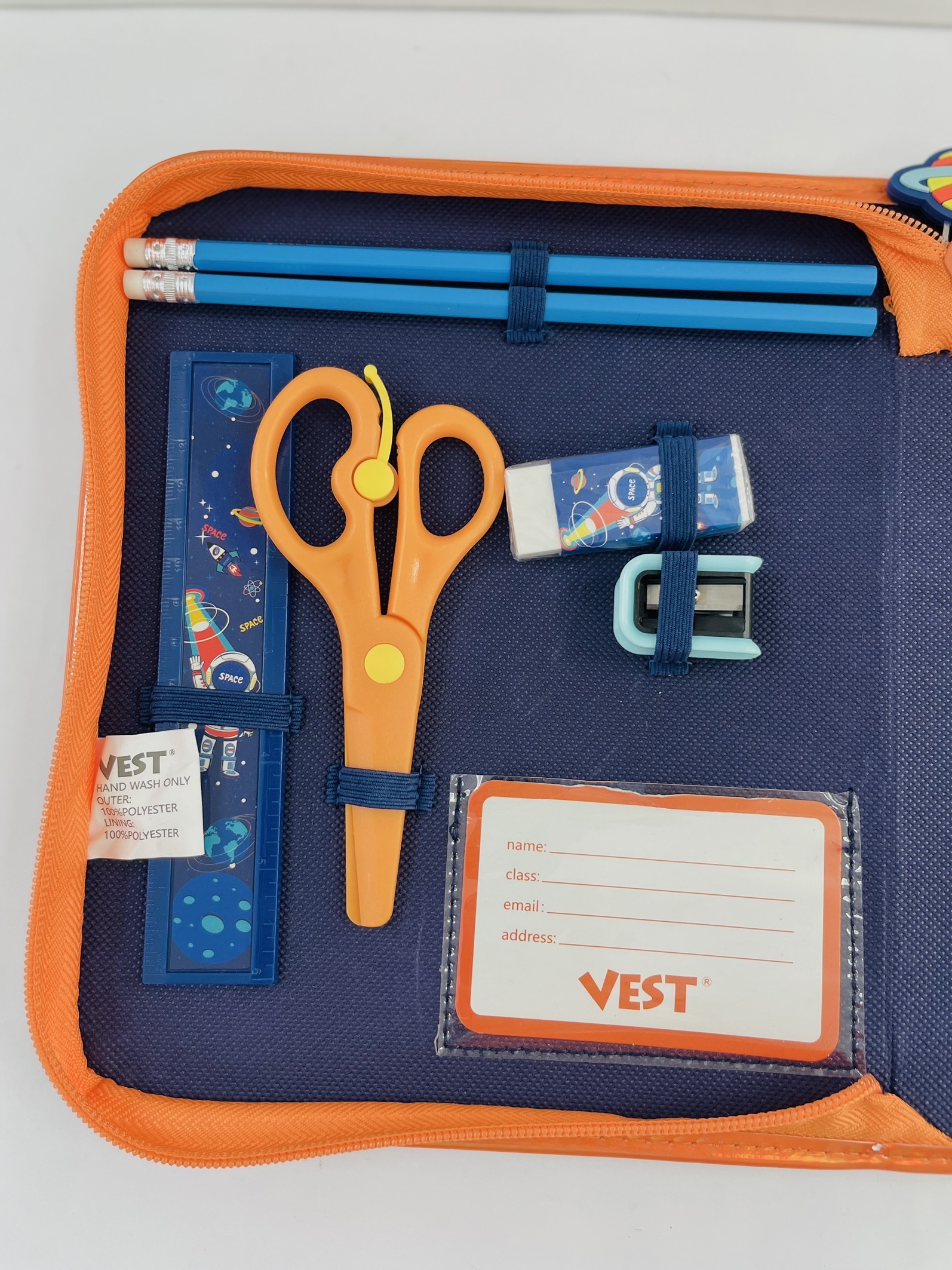 یک کارت اسم ، یک پاکن ، یک خط کش ۱۵ سانتی،یک تراش، یک دفتر رنگ آمیزی و قیچی