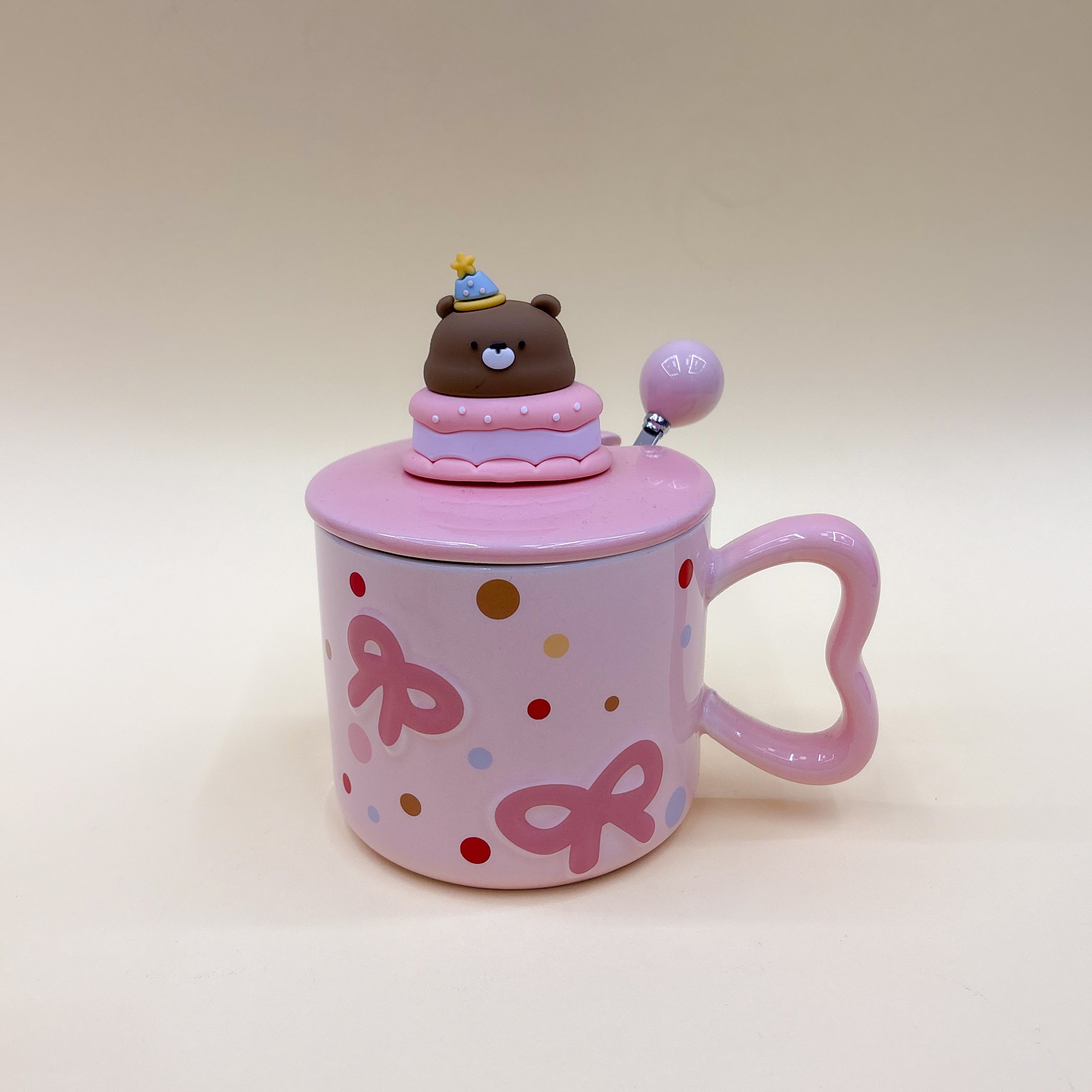 ماگ سرامیکی فانتزی با طرح خرسی دوستداشتنی، دارای در برای حفظ دمای نوشیدنی و قاشق هماهنگ. مناسب نوشیدنیهای گرم و سرد و انتخابی عالی برای هدیه.