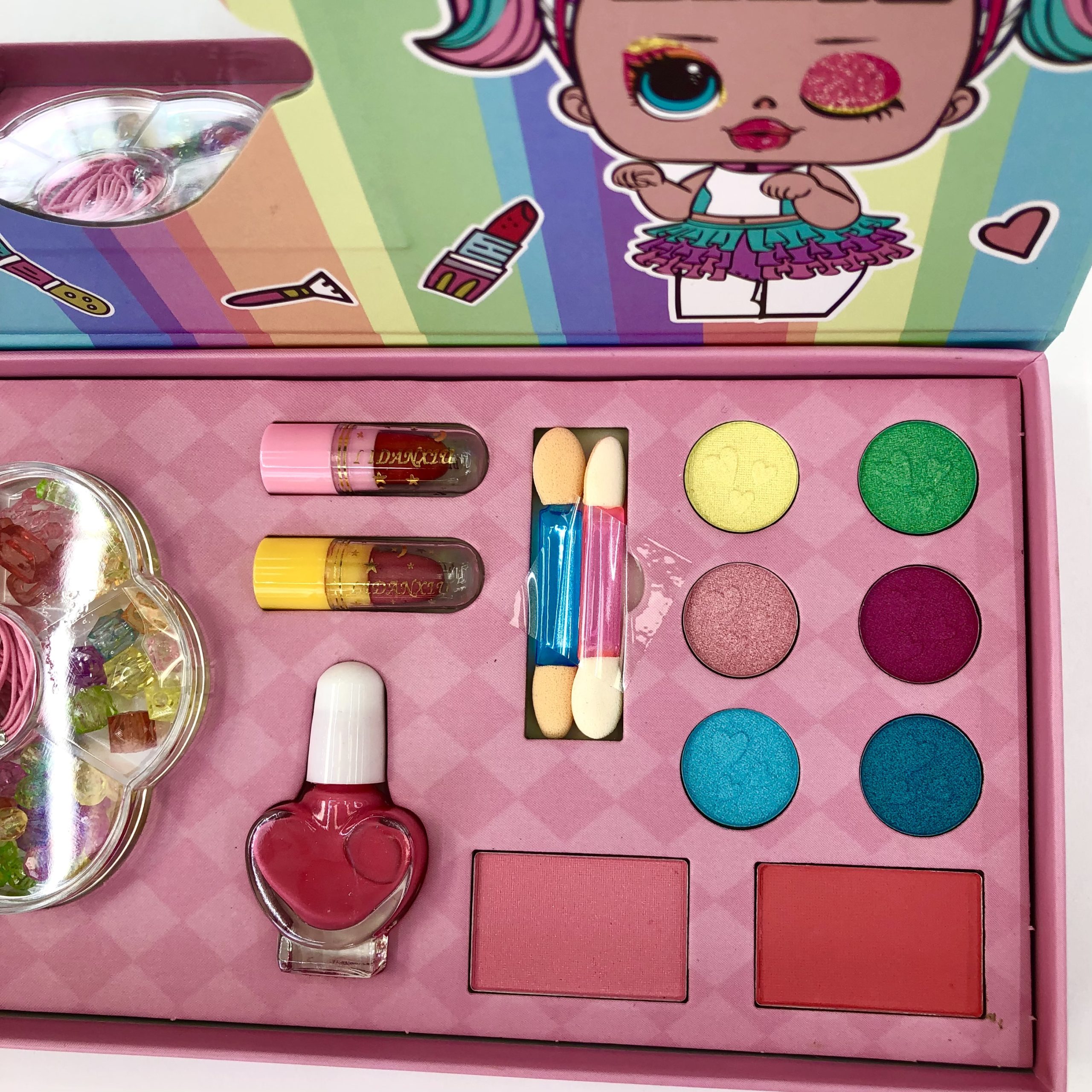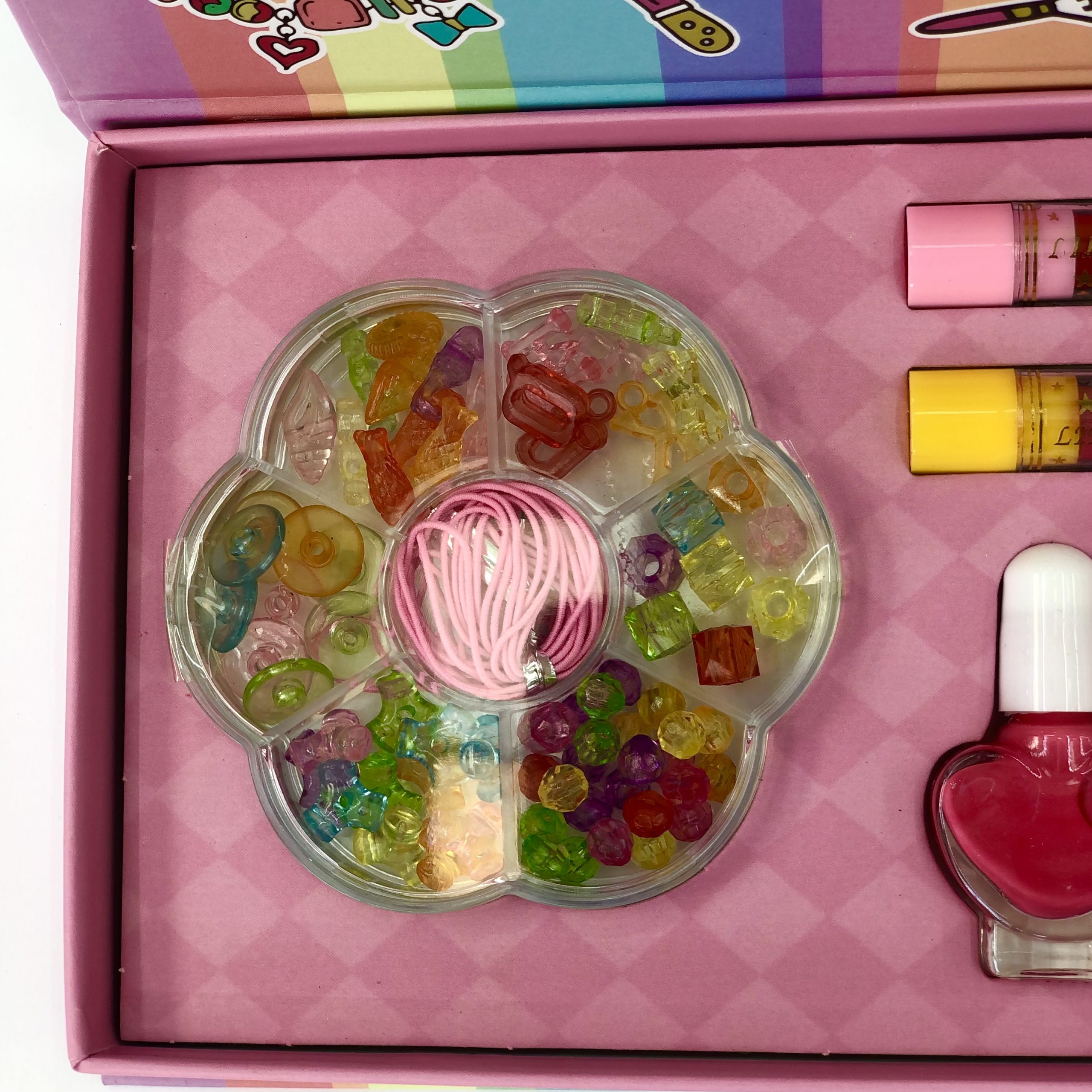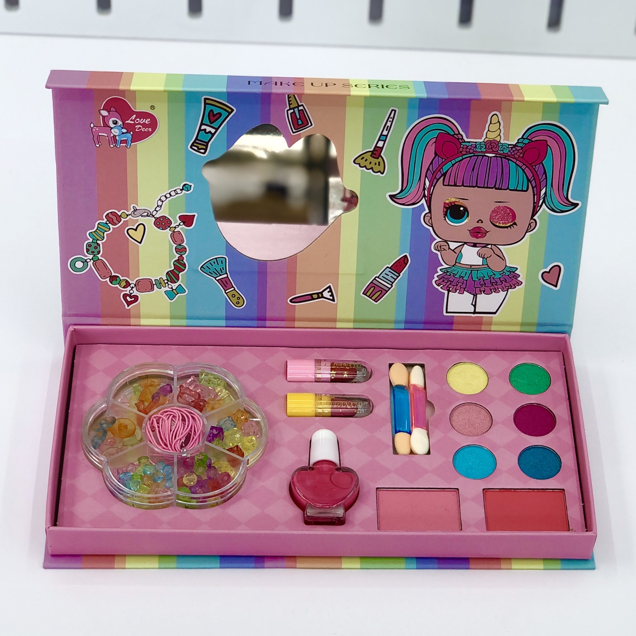 پک آرایشی بچگانه مخصوص کوچولوهای ۳ سال به بالا، شامل سایه شاین و مات،لاک ،مهره های دستبند سازی و…در رنگهای شاد و بامزهست. کاملاً بیضرر و مناسب بازی و سرگرمی بچهها طراحی شده، تا با خیال راحت توی دنیای رنگی خودشون خوش بگذرونن.